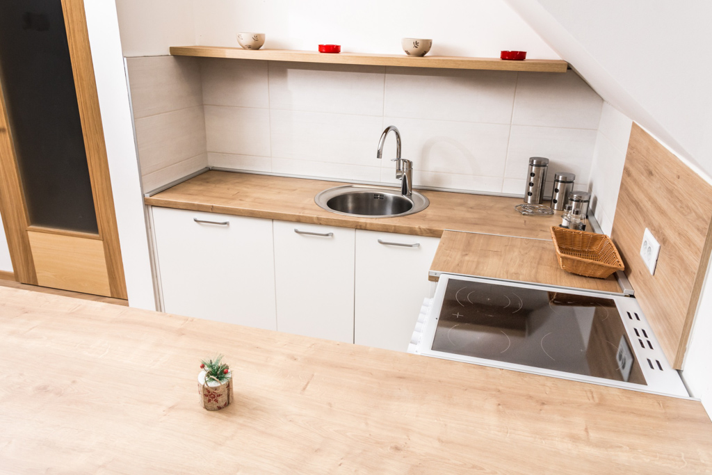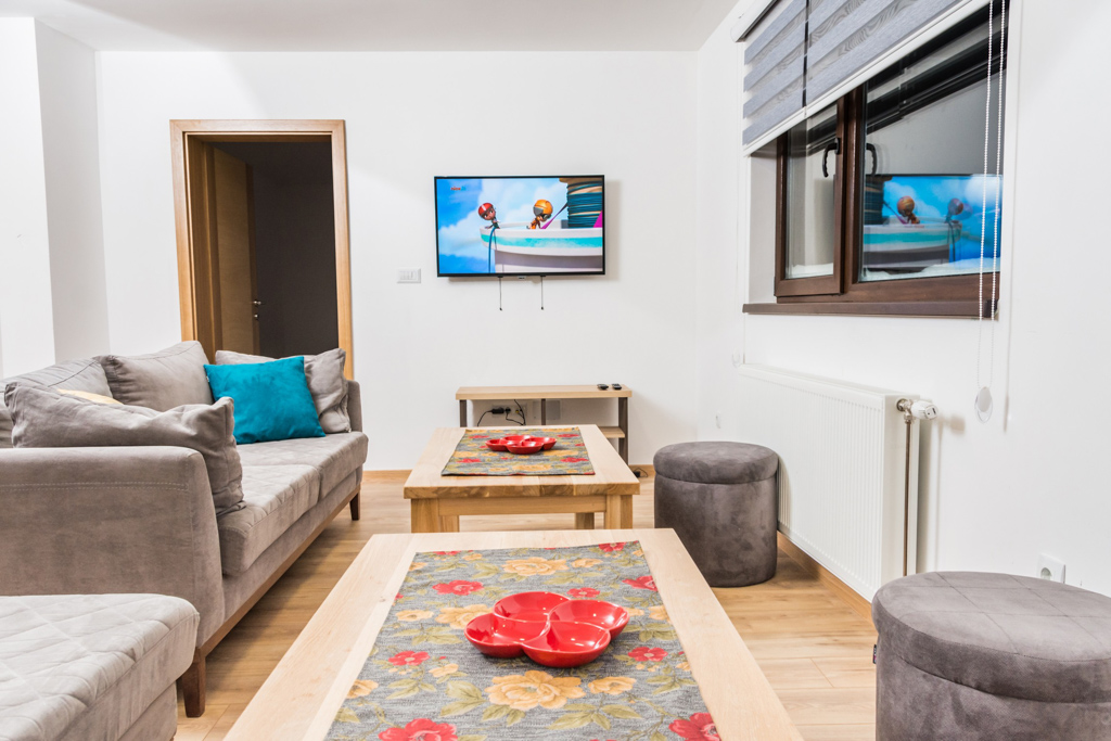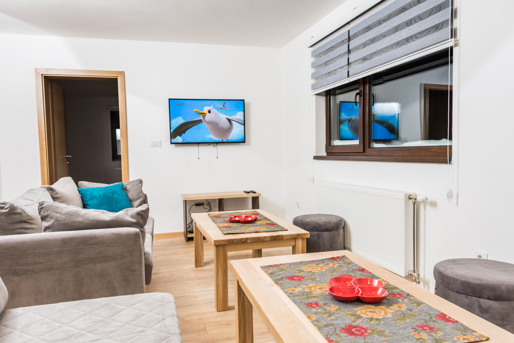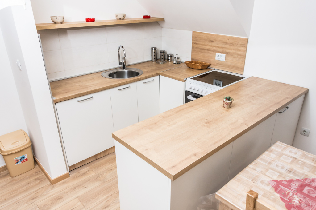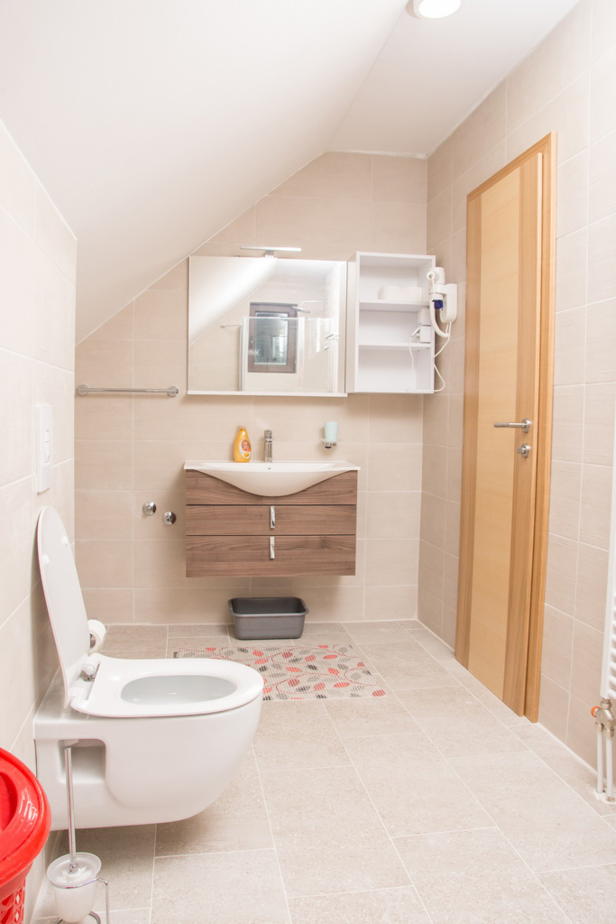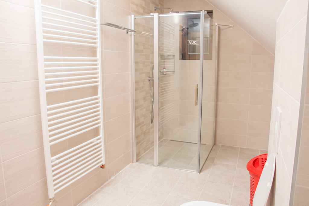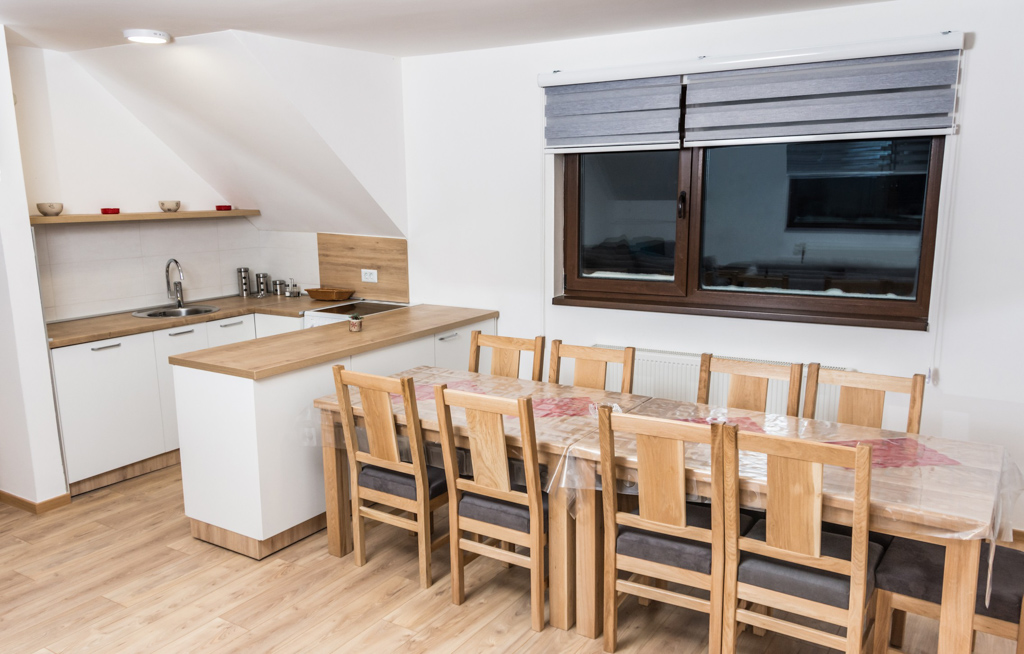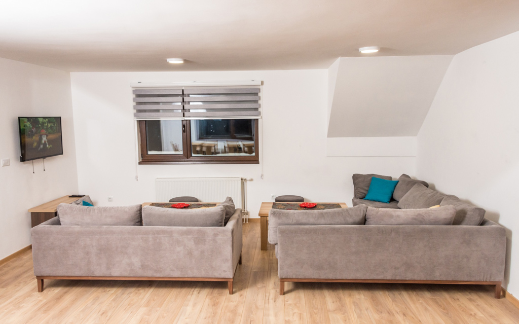 Apartment 6 consists of a living room, kitchen, bathroom, hallway and 3 rooms. The total area is 97 m2. All rooms have a double bed and a single bed, so you can make 3 single beds in each room.